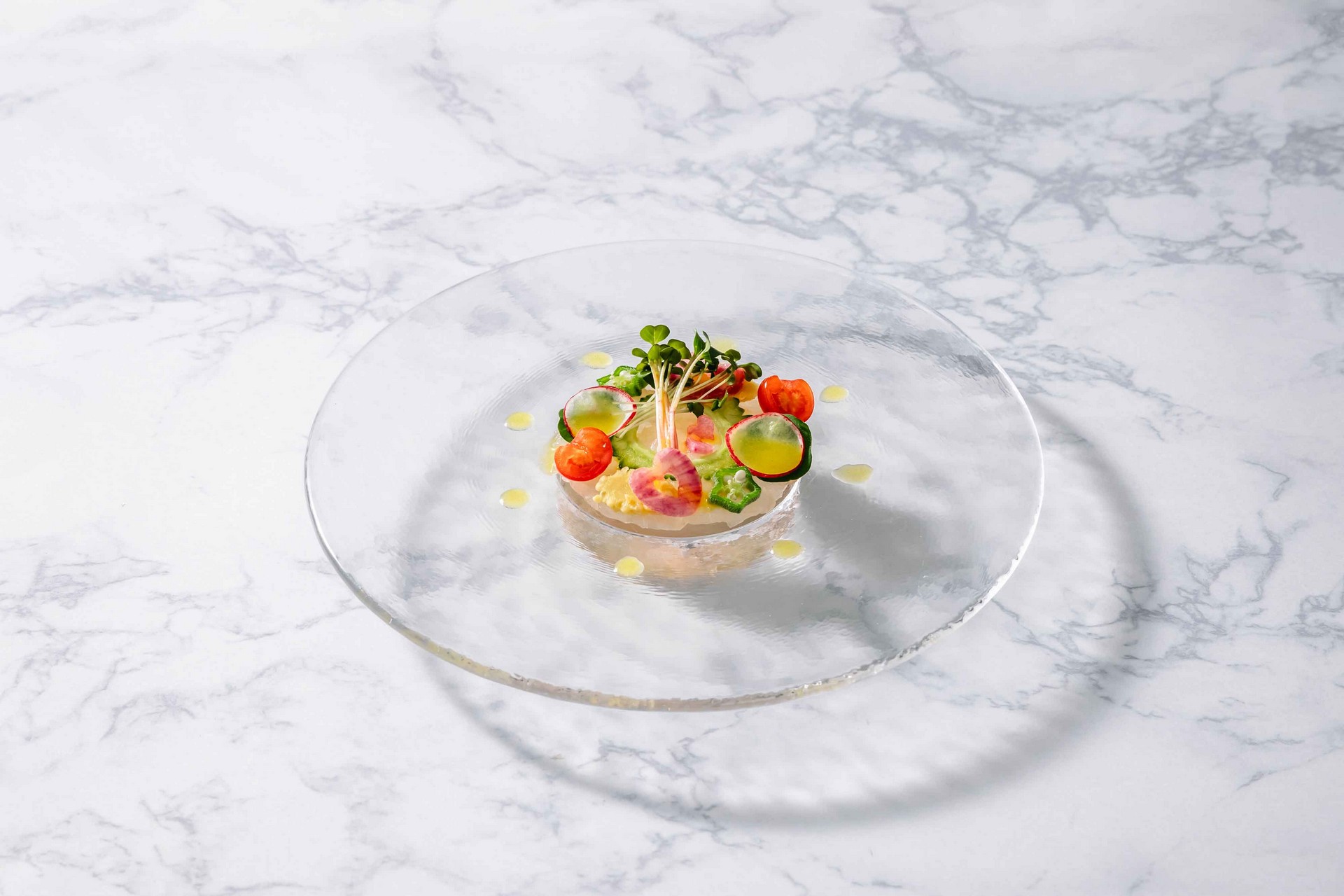 Entrée froide|冷前菜:鲜鱼薄片与香草奶冻交织,呈现市集新鲜感。