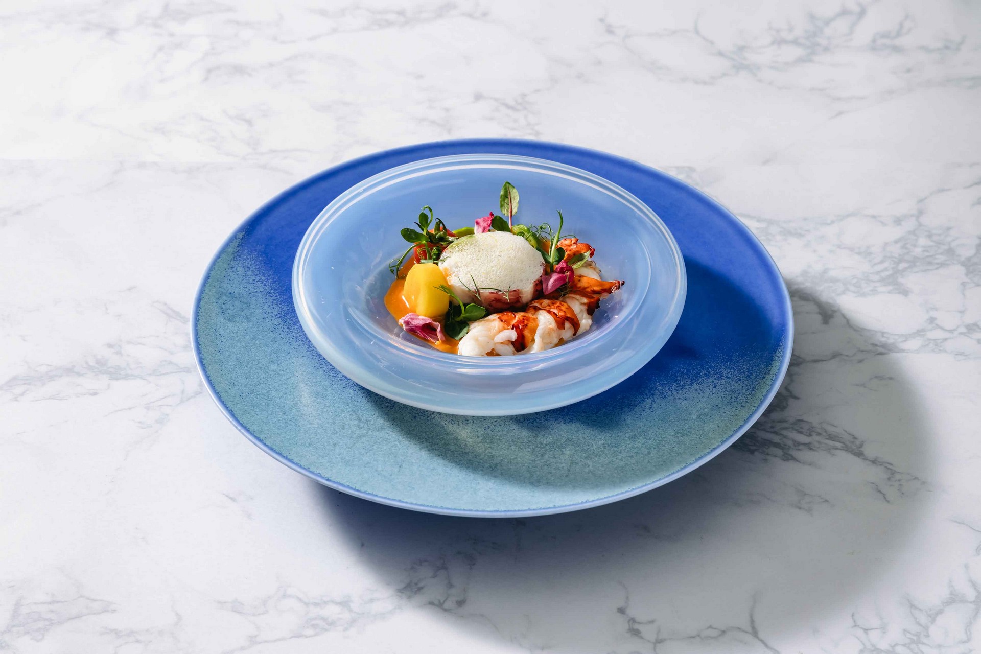 Poisson|海鲜主菜:龙虾搭配香草泡沫与鲜果色拉,如同巴黎市集中最受欢迎的摊位。
