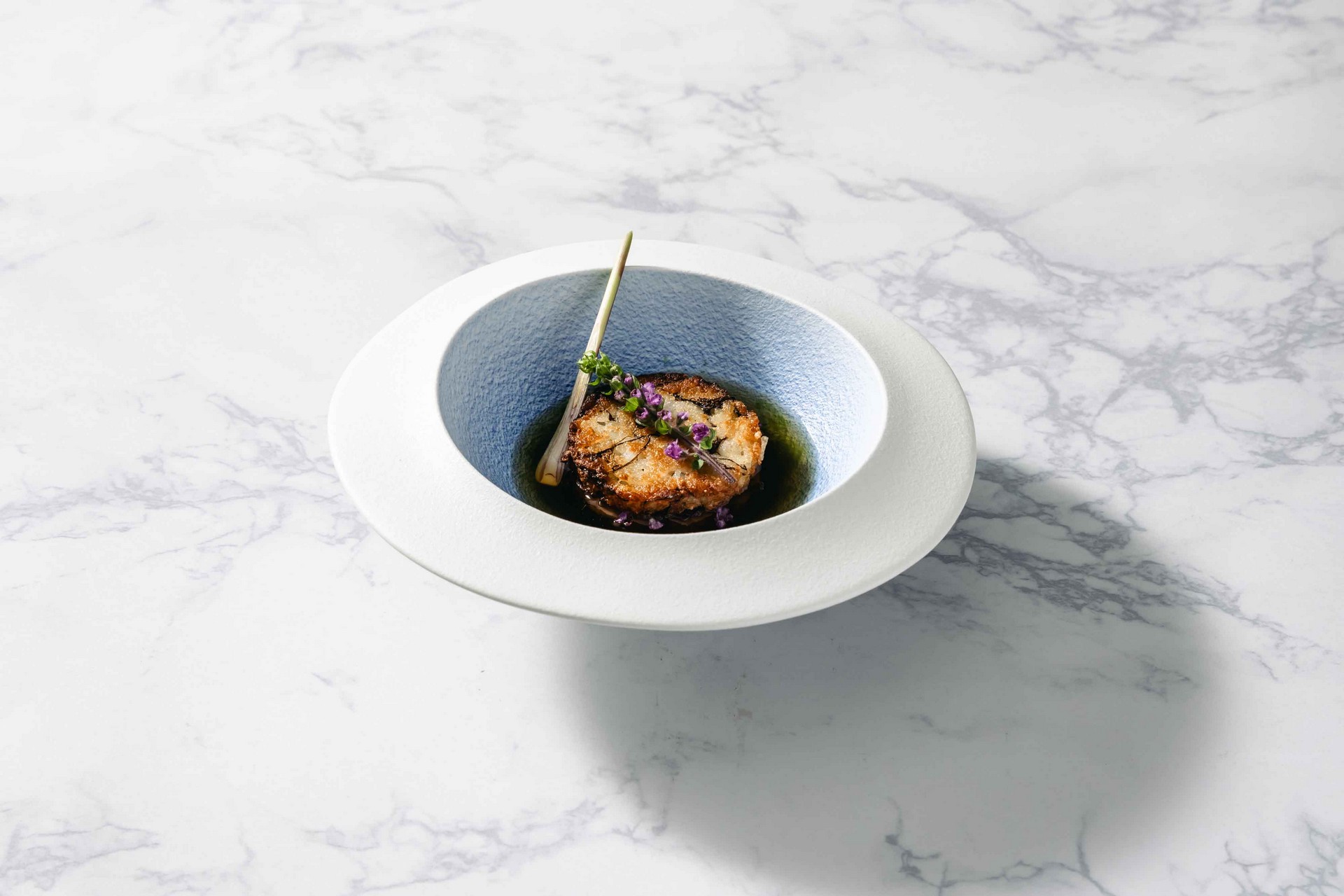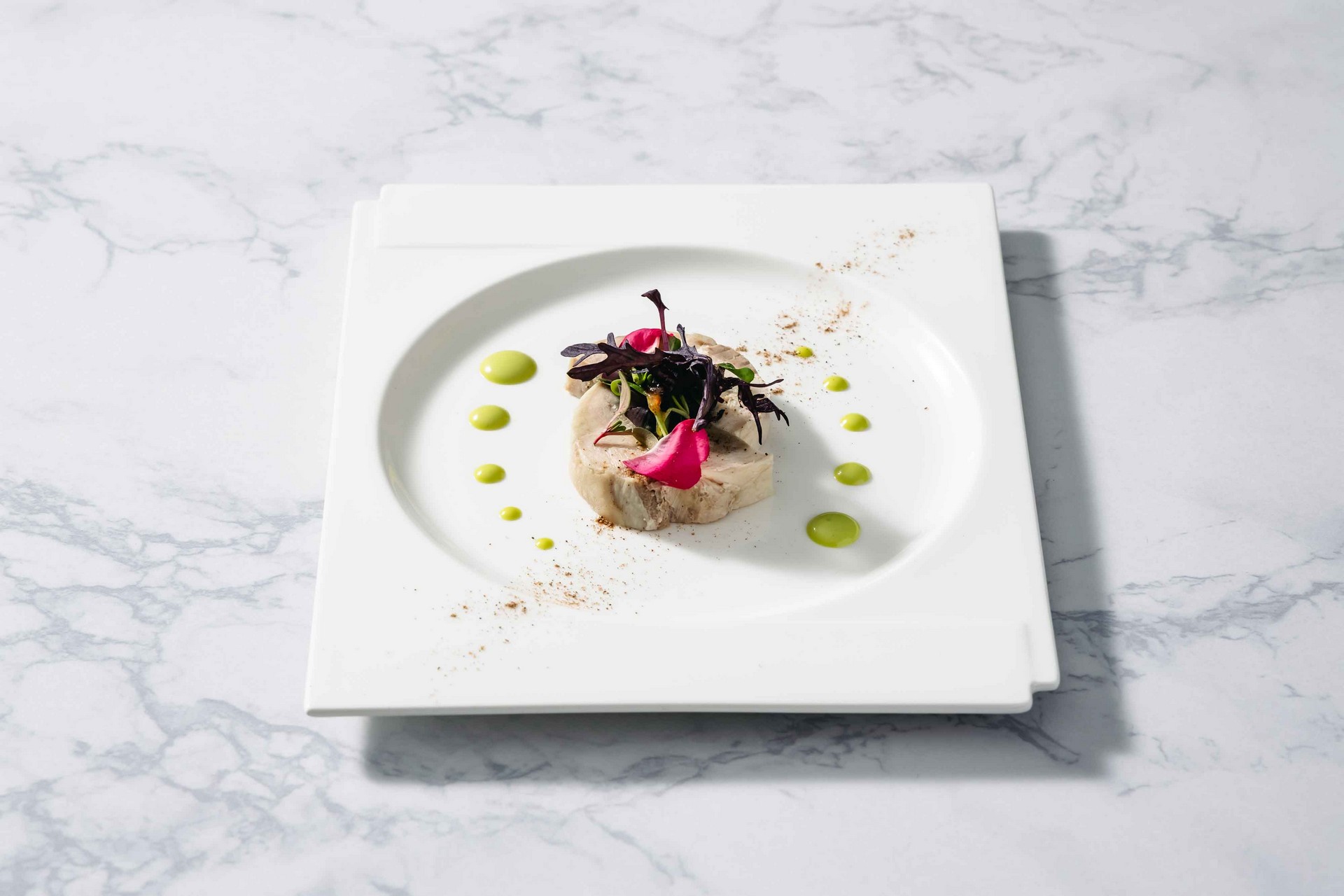 Entrée chaude|暖前菜: 香煎白肉搭配时蔬泥,温润细致。