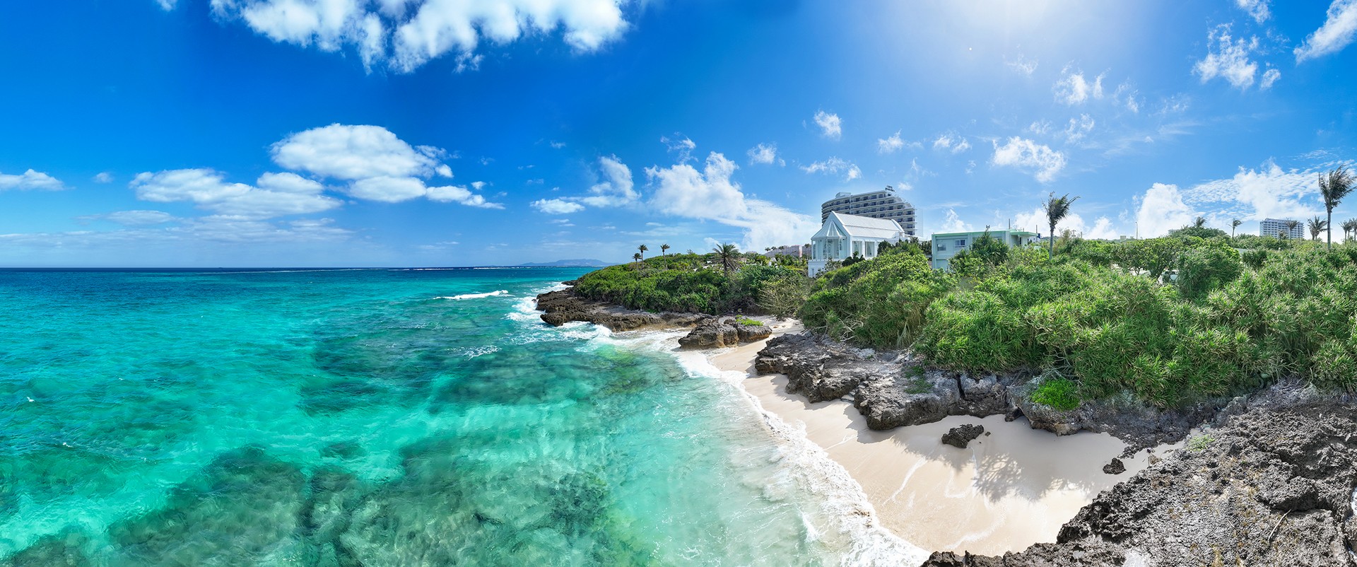 冲绳海之光露梅尔教堂的另一大魅力在于其得天独厚的地理位置。教堂坐落于一片开阔的海岸线上,背靠碧绿的森林,面朝浩瀚的太平洋,环绕在清新自然的美景之中。在这里,碧蓝的大海与洁白的细沙滩相得益彰,微风轻抚、海鸥低徊,描绘出一幅动人的画卷。